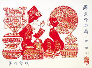 滿族婚俗剪紙《開臉》。均為資料圖片