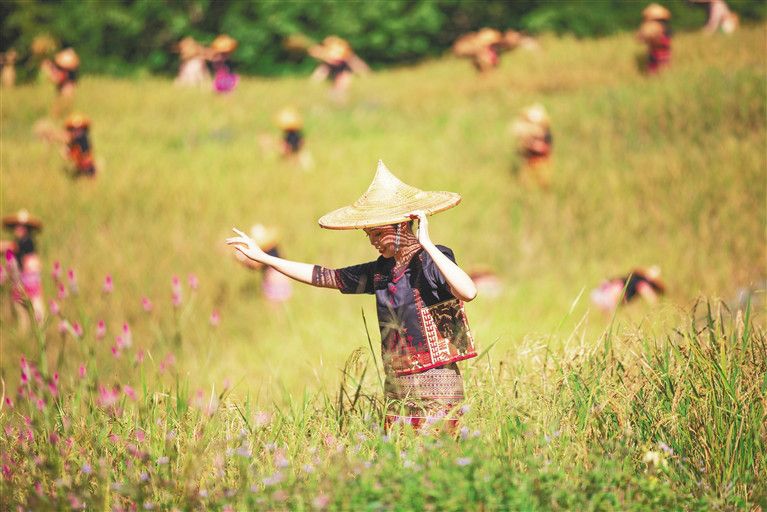 11月21日,在白沙黎族自治縣青松鄉(xiāng)擁處村、青松村等村莊的山坡上、山谷里,放眼望去,在群山疊翠間,漫山遍野都是金黃色的山蘭旱稻,這般豐收的場景尤為賞心悅目。當(dāng)天,2021年白沙“啦奧門”山蘭文化節(jié)在青松鄉(xiāng)擁處村啟幕,活動旨在讓更多的人知曉海南黎族山蘭旱稻的農(nóng)耕文化,進(jìn)一步提升“啦奧門”山蘭文化節(jié)民族品牌活動的影響力,助力鄉(xiāng)村振興“加速跑”。