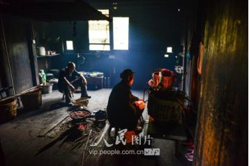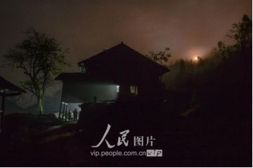 一般要到快過春節(jié)的時(shí)候,男方家才專門請人去接女方來洗糯米、打糍粑,新娘方能在夫家住上一夜;在來年農(nóng)忙時(shí)節(jié),又接女方來幫忙,夜里仍不能在男方家留宿,幫完忙當(dāng)晚即回去,只有待到女方有身孕后,新娘才到夫家長住。圖為11月16日夜,新娘潘芝銀家為準(zhǔn)備婚禮,燈火徹夜長明。