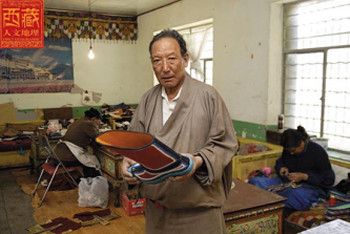 今天,彩泉民族手工業(yè)公司在廠部和拉薩市內成立了兩家專賣店,并且還設有多個代銷點,廠子里實行計件制,讓工人的生產積極性得到提高,生產、銷售基本走上正軌,這也讓辛苦了一輩子的赤列塔青倍感欣慰。他說,只要公司的情況改善,個人吃點苦算不了什么。藏鞋考拉薩市城關區(qū)原有三家鞋帽廠,后來因為各種原因有的轉行,有的倒閉,現在只剩下了赤列塔青所在的“彩泉民族手工業(yè)公司”還在堅持生產傳統藏鞋,諾大的車間里也只有七八個工人在勞動,其中多為婦女,還有幾個殘疾人,但從工人們的臉上看不出失落的表情,他們邊喝茶邊聊天邊工作,藏族人樂觀開朗的性格使他們不會把世俗的壓力硬往自己的肩上扛。相反,車間的“靈魂人物”赤列塔青雖然平時沉默寡言、不善言談,但如果你問他什么,他會和盤托出,把自己知道的一切都告訴給你。