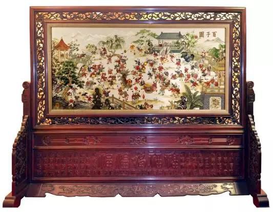 作品構(gòu)圖飽滿,氣氛鮮明,展現(xiàn)出一百位童子各異的形態(tài)、生動傳神。體現(xiàn)了傳統(tǒng)潮繡極高的工藝技法和藝術(shù)水平。