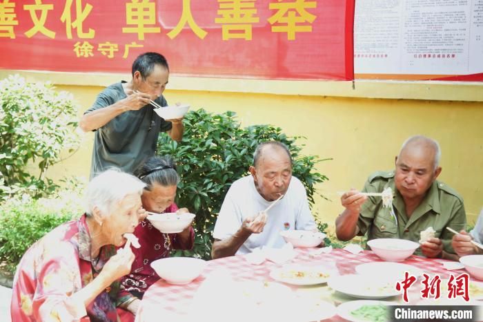 “孝善羊湯宴”將伏羊節(jié)推向高潮,當(dāng)?shù)卮迩f免費(fèi)請(qǐng)“孝善人家”代表等“喝伏羊”。 付宏 攝