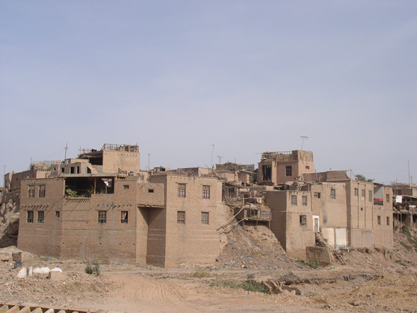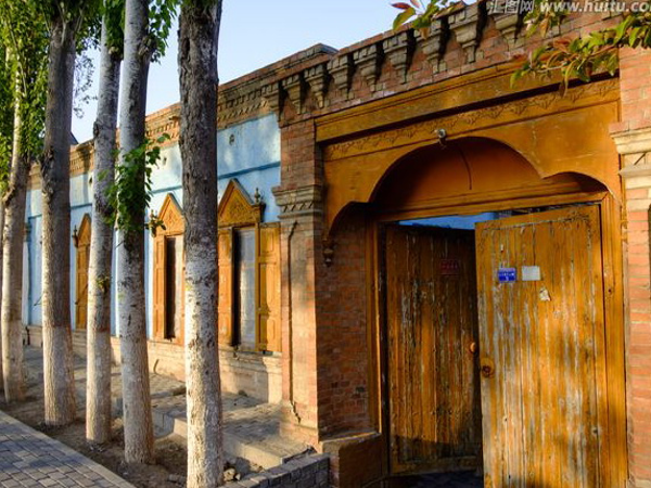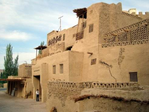 維吾爾族的居室一般是土木結(jié)構(gòu)平房,其建筑方式是以粗木或沙石作基,土塊砌墻,或笆子墻,房頂架梁檁、椽后鋪葦席加土抹泥。房屋平頂,開(kāi)天窗采光,四壁不開(kāi)窗只留門(mén),房門(mén)忌朝西。現(xiàn)在,建筑式樣發(fā)生變化,多留壁窗,建材也多由土木結(jié)構(gòu),向磚、混凝土結(jié)構(gòu)發(fā)展。室內(nèi)布置過(guò)去較為簡(jiǎn)單,一般多砌土炕,炕一側(cè)隔矮墻砌鍋臺(tái),墻上留有壁翕,放置物品,喜掛壁毯。冬季多燒爐子、火墻取暖。院內(nèi)多植有葡萄和果樹(shù)花卉。房門(mén)口兩側(cè)砌土臺(tái),上鋪氈毯,用以夏天乘涼、睡覺(jué)。