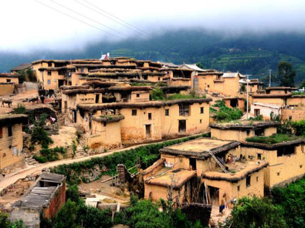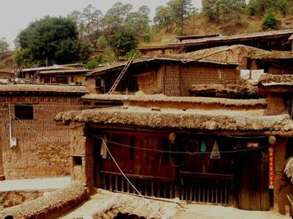 彝族是農(nóng)牧兼營(yíng)的民族,村寨的分布與坐落有其獨(dú)特的傳承。彝族的村寨多坐落在海拔2000~3000米的山區(qū)、半山區(qū),相沿聚族而居。為適應(yīng)西南地區(qū)亞熱帶氣候和山地特點(diǎn),彝民們便就地取材,以一種最容易、最節(jié)省錢財(cái)人力的建房方式,創(chuàng)造出中國(guó)建筑的獨(dú)特樣式——土掌房。土掌房多建于山地斜坡上,以石為墻基,用土坯砌墻或用土筑墻,墻上架梁,梁上鋪木板、木條或竹子,上面再鋪一層土,經(jīng)灑水抿捶,形成平臺(tái)房頂,不漏雨水。有的大梁架在木柱上,擔(dān)上墊木,鋪茅草或稻草,草上覆蓋稀泥,再放細(xì)土捶實(shí)而成。