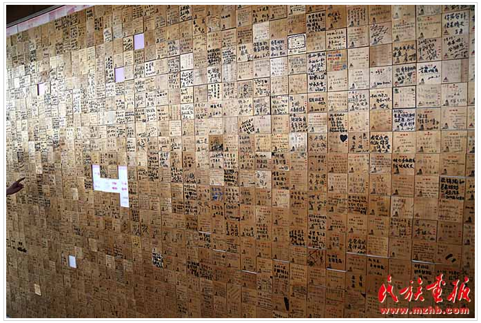 防川龍虎樓上游客的留言牌貼滿了一面墻