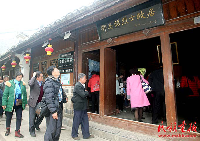 許多人在鄧恩銘烈士故居前重溫入黨誓詞