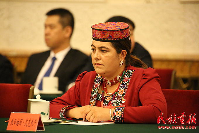 十九大代表、新疆塔什庫爾干塔吉克自治縣塔什庫爾干鄉(xiāng)小學黨支部書記米日姑麗·艾克米汗(塔吉克族)(滕俊攝影)