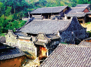 畬族主要聚居在浙江省和福建省山區(qū)的丘陵、山谷盆地。浙江景寧是我國(guó)唯一的畬族自治縣。畬族聚居的村寨都在離縣城不遠(yuǎn)的大山里,大都選擇避風(fēng)向陽(yáng)、有水源的地方建房成村。在村寨四周栽種松樹(shù)、楓樹(shù)、榅樹(shù)、苦櫧,房前屋后種毛竹、果樹(shù)。村口有樹(shù)能擋風(fēng),屋后種樹(shù)能蓄水,空氣也格外新鮮,因此,便有了“造成風(fēng)水畫(huà)成龍”的畬族諺語(yǔ)。