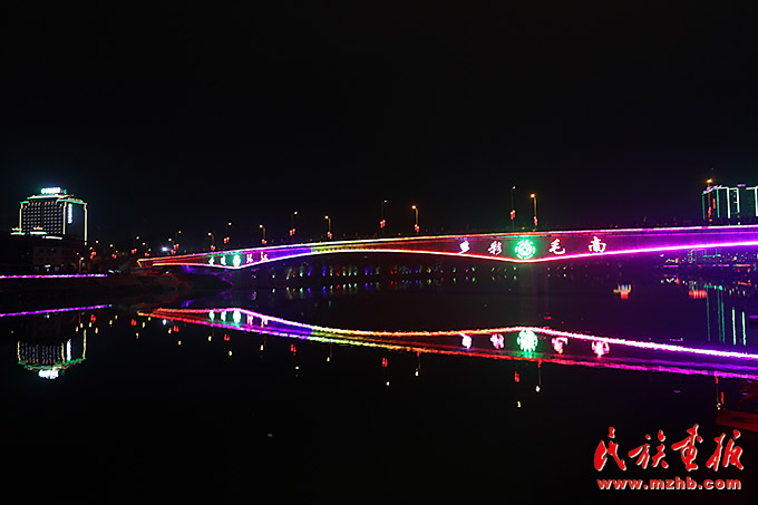 11月9日通車(chē)的環(huán)江三橋不僅便利了交通,橋上的霓虹燈把夜色中的毛南山鄉(xiāng)裝點(diǎn)地非常美麗