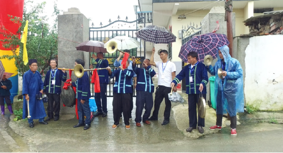 布依族青年們抬著族中神物銅鼓,吹著長長的號角,臉上滿是對民族節(jié)日的期待之情,驕傲又興奮;成群結(jié)隊的孩童穿著本民族傳統(tǒng)服飾,手拿錦帶,熱忱歡迎遠(yuǎn)道而來的客人;能歌善舞的布依阿姐笑臉相迎,唱著布依族的歌謠,一字排開堵在門前,客人們想要進(jìn)去參加這次盛會,就得過三關(guān),干了三碗攔路酒。
