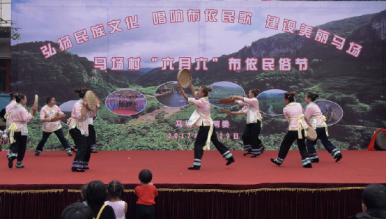 祭祀完成后,當(dāng)?shù)氐哪信仙俅┲约旱拿褡宸棧d高采烈地為客人表演極具民族特色的歌舞。連周邊的苗族同胞也來為布依族節(jié)日慶賀,登臺表演共敘友誼。一些村民們自發(fā)性地登臺參與演出,雖然質(zhì)樸卻不失誠意。