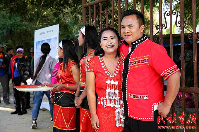 一對新人在雙方父母見證下,以佤族傳統(tǒng)婚禮方式喜結(jié)良緣