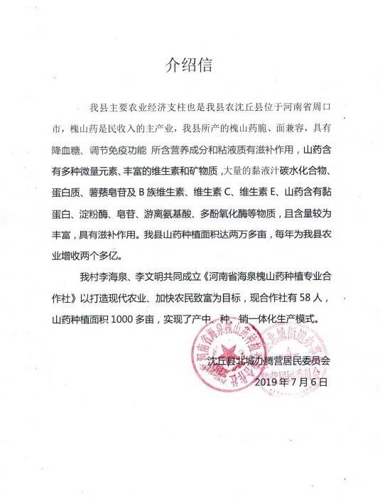 因?yàn)椤盎比龑殹钡男б婷黠@,合作社于2013年成立之初吸納社員102戶,種植面積達(dá)1000多畝。2014年5月,“槐三寶”商標(biāo)順利通過(guò)國(guó)家農(nóng)業(yè)部無(wú)公害農(nóng)產(chǎn)品認(rèn)證和無(wú)公害農(nóng)產(chǎn)品標(biāo)識(shí)使用權(quán),基地獲河南省農(nóng)業(yè)廳無(wú)公害農(nóng)產(chǎn)品產(chǎn)地認(rèn)定。發(fā)展到現(xiàn)目前,2019年,其種植面積已經(jīng)超過(guò)4000畝,產(chǎn)量在5500噸以上。據(jù)合作社監(jiān)事李文明講:“今年沒(méi)澇,現(xiàn)在七月,山藥快成熟了,可以預(yù)見(jiàn),是個(gè)豐收年?!薄?/p>