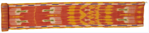 艾德萊斯綢收集于新疆庫爾勒地區(qū),大面積的紅色之中,點(diǎn)綴著象征維吾爾族生存環(huán)境的黃色,以及伊斯蘭教崇尚的綠色和象征著天空的藍(lán)色。木梳紋、石榴紋、龕座紋等紋樣呈條狀規(guī)則排列,多種色彩拼合出強(qiáng)烈的視覺效果,洋溢著跳蕩激昂的韻律和熱情似火的西域風(fēng)情。