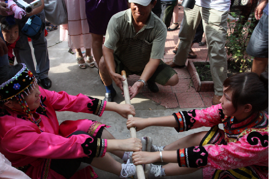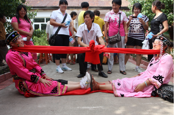 鄂倫春族特別喜歡體育活動(dòng),每當(dāng)狩獵閑暇的時(shí)候,便會(huì)開展各項(xiàng)體育比賽活動(dòng)。兩三個(gè)人在一塊平地上,拿出一根皮繩就可以進(jìn)行跳繩比賽;在河邊撿起石頭就可以進(jìn)行投擲比賽;跳到河里又可以進(jìn)行游泳比賽。他們也很樂于進(jìn)行力的較量,摔跤,鄂倫春語稱“娟滴任”,這是獵人們普遍喜愛的一項(xiàng)運(yùn)動(dòng),常勝者會(huì)贏得人們的贊賞和姑娘的青睞。還有一種較力比賽,鄂倫春語稱“譚滴任”,俗稱“拽棍”。兩人相對(duì)坐在地上,雙手緊握一根約半米長的木棍,雙腳平伸雙足相抵。比賽開始,雙方拼力拽拉木棍,將對(duì)方拉起來為勝。