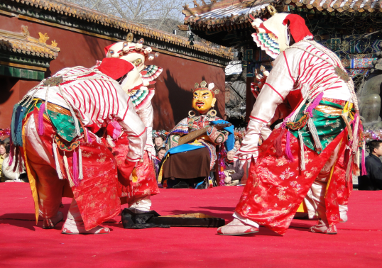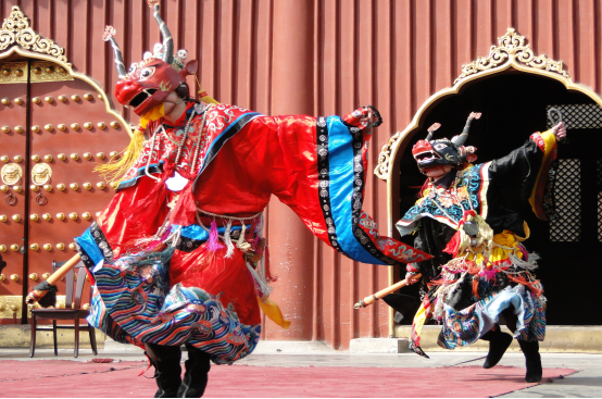 內蒙地區(qū)的查瑪樂舞已與藏族地區(qū)的“羌姆”明顯不同。隨著藏傳佛教傳入蒙古地區(qū)后,積極的吸收和融合了蒙古族傳統(tǒng)音樂舞蹈和薩滿教神舞的因素后形成了蒙古化的查瑪樂舞。因此,內蒙地區(qū)的查瑪內具有復合型和多元性特點。2008年,查瑪樂舞被列入國家級非物質文化遺產(chǎn)。