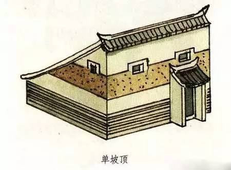 單坡頂就是只有一面坡的屋頂。它與我們常見的兩面坡屋頂有較大的不同,但從一面來看又有極大的相似性。我們甚至可以說,單坡屋頂就像是兩面坡屋頂被從中間一切兩半了。單片屋頂一般都用在不太重要的建筑或是附屬性的建筑上。在已發(fā)掘的商代宮殿遺址中,可以看到在商代即有單坡頂?shù)睦茸恿恕6F(xiàn)在的陜西、陜西等地的農(nóng)村,許多民居仍然使用單坡式的屋頂,成為現(xiàn)今較富有特色的一種民居形式。