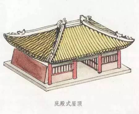 根據(jù)資料與記載,廡殿頂屋頂早在殷商時(shí)代就已出現(xiàn)。不過,現(xiàn)在對(duì)唐代中期以前的廡殿式屋頂?shù)木唧w結(jié)構(gòu)已無從得知,晚唐以后漸有實(shí)例可查。其形象是屋面平緩,正脊較短。正脊兩端為鴟尾而不是鴟首。
