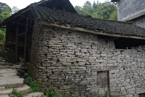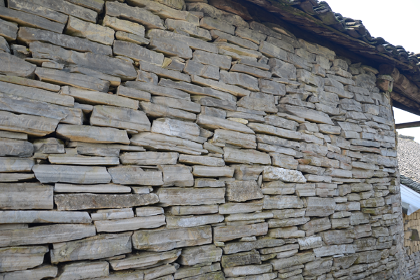 石板房以石條或石塊砌墻,墻可壘至5至6米高;以石板蓋頂,風(fēng)雨不透??傊?,除檁條、椽子是木料外,其余全是石料,甚至家用的桌、凳、灶、缽都是石頭鑿的。一切都樸實(shí)無華,固若金湯。這種房屋冬暖夏涼,防潮放火,相對(duì)采光較差。