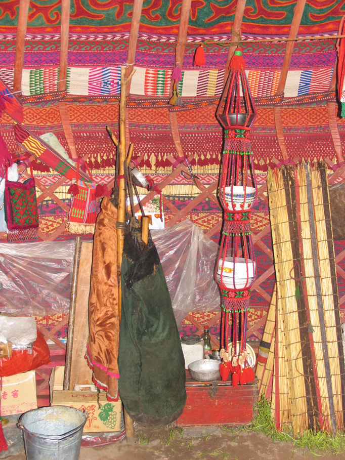 氈房?jī)?nèi)部精美的刺繡(劉軍攝)