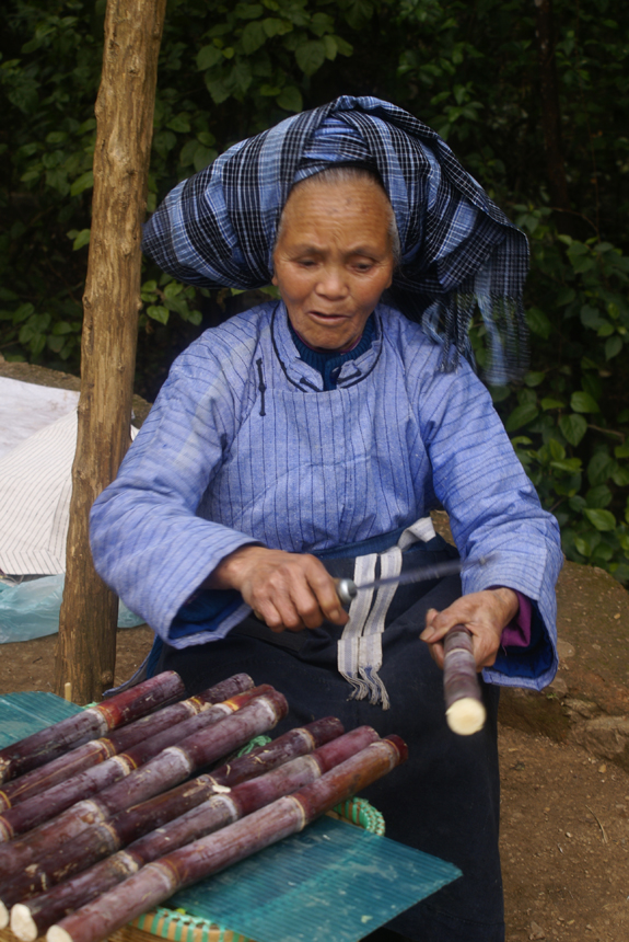 孝敬父母,尊敬老人在布依族人看來是天經(jīng)地義的事,民間有“天上雷公大,天下父母大”“飲酒先敬父,吃肉先敬兄”“山大長(zhǎng)雜草,人大養(yǎng)父母”等諺語。布依族在尊老方面,有具體的言行規(guī)范和細(xì)則,違之則會(huì)受到社會(huì)的譴責(zé)。家里再窮也要盡心贍養(yǎng)老人,不得怠慢。與老年人或長(zhǎng)輩同行,必須讓他們走在前面;同行時(shí)有10歲以下的小孩兒,也要讓其走在前面。路上見老年人或長(zhǎng)輩挑東西,若是順路必須為他們挑一段路程,甚至送到家。生活上,吃飯時(shí)要先請(qǐng)老人,席間,晚輩要主動(dòng)為長(zhǎng)輩盛飯、拈菜,雞頭、雞肝、雞心一定要敬給老人吃?;ㄏ?zhèn)山村布依族就餐時(shí),由老人先將桌上的每一道菜都動(dòng)過一輪后,小輩才能吃(圖為賣甘蔗的布依族老人,劉軍供圖)。