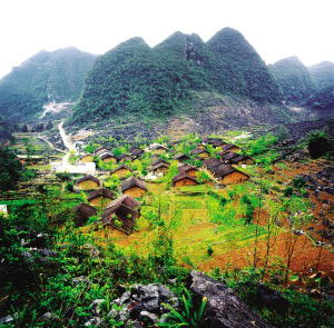廣西百色地區(qū)那坡縣村落。村寨多隨地形與山勢(shì),布局自由分散,既不存在縱橫軸線(xiàn),也沒(méi)有明顯的村寨邊界。受地形影響,村寨規(guī)模一般不大