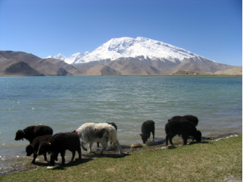 塔吉克人民生活在雪嶺冰峰之下,河流兩岸的谷地,這里不僅有連綿成片的草原山區(qū),也有可供稼穡的平原。他們主要從事畜牧業(yè),與此同時(shí),他們也兼營(yíng)農(nóng)業(yè),過著半定居半游牧的生活。