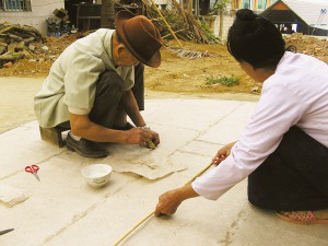 關(guān)于孔明燈的制作工藝,現(xiàn)在的年輕人掌握的已經(jīng)不多了,主要還是靠老人。景洪市嘎灑鎮(zhèn)曼回索村60多歲的民間手工藝人巖妞就是做孔明燈很有名氣的老人。巖妞制作孔明燈已經(jīng)有20多年了,他做的孔明燈飛得高,還能帶著鞭炮在空中啪啪炸響,增添了節(jié)日氣氛。在今年4月13日傣歷1374年新年節(jié)(潑水節(jié))來臨之際,巖妞忙得不亦樂乎,前來找他定做孔明燈的人絡(luò)繹不絕。
