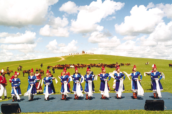 內(nèi)蒙古烏蘭牧騎的演員,吹拉彈唱跳,幾乎個個是多面手。從以前騎馬下鄉(xiāng)到現(xiàn)在坐車下鄉(xiāng),方式雖然有變,但為農(nóng)牧民演出的熱情沒有變。鄂溫克自治旗烏蘭牧騎在當?shù)貫檗r(nóng)牧民演出都是公益性的,一年最少也有100多場。但自然地,由上級指派、旅游接待、大型晚會、出訪演出,則收一些相應(yīng)費用。全年下來300多場。他們的演出節(jié)目,一般都有舞蹈、獨唱、重唱、馬頭琴合奏、民歌聯(lián)唱等,包括《敖包相會》、《萬馬奔騰》等馬頭琴名曲,也有他們自己創(chuàng)作的《山林回想》、《鄂溫克大地》等獲獎歌舞劇目。