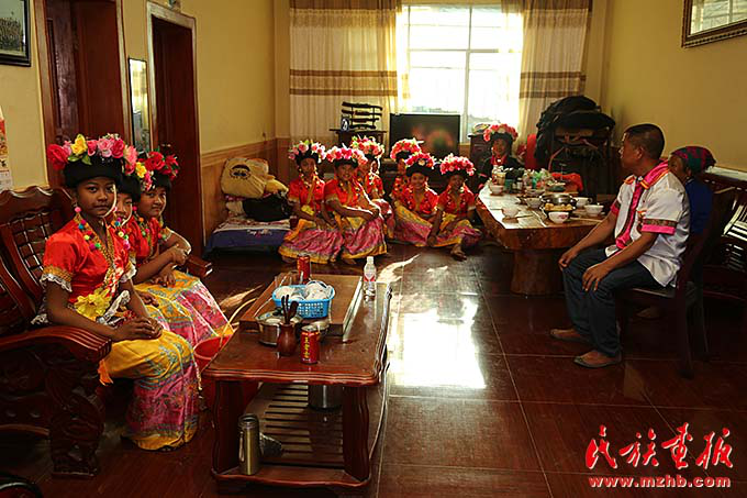 “今天是好日子,是個吉祥的日子,感動天、感動地,所有的布朗族兄弟,我們歡樂來相聚?!辈祭首鍙棾〖墏鞒腥擞窨怖痛迕褚黄鸪似饋?。