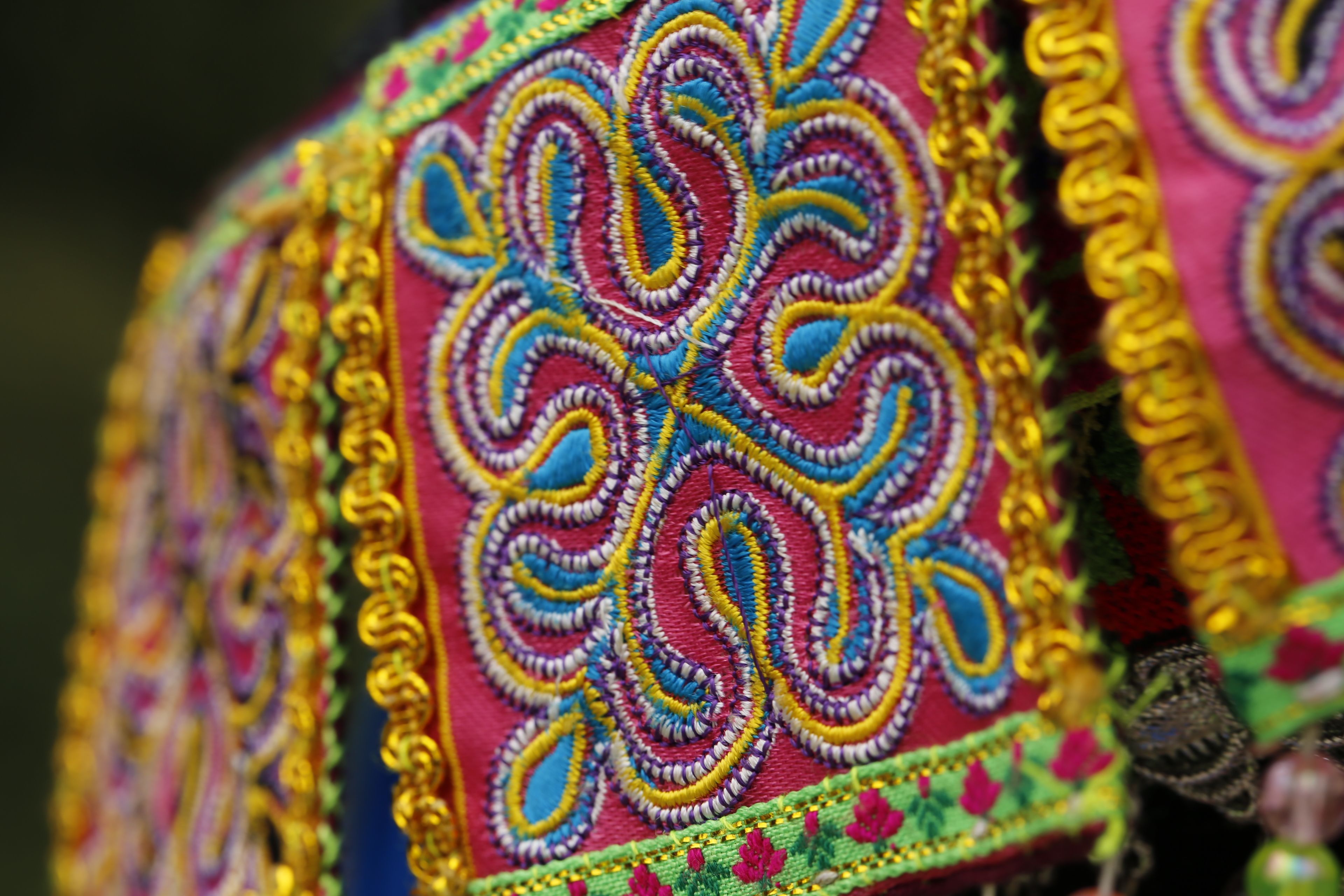 苗族女子服飾花帽-正面繡花及裝飾