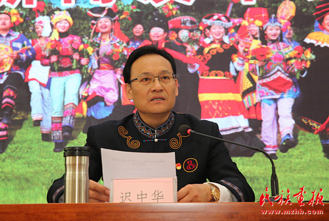 楚雄州委副書記、楚雄州人民政府州長(zhǎng)遲中華介紹楚雄彝族自治州基本情況和自治州成立六十年來經(jīng)濟(jì)社會(huì)發(fā)展的輝煌成就等情況