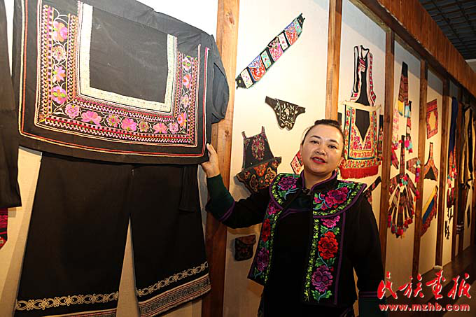 墻上的刺繡物品均是李長(zhǎng)征從各地收集來(lái)的,最久的飾物距今有200多年歷史(民族畫(huà)報(bào)曾穎 攝影)
