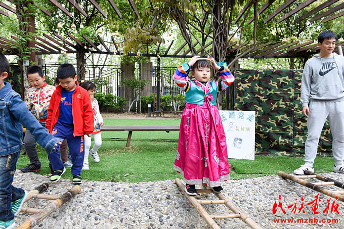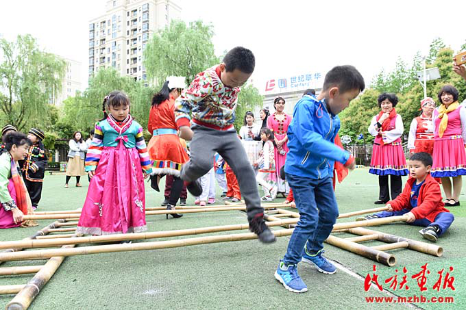 每次活動日,學校都會從民族傳統(tǒng)游戲中梳理出十多個符合幼兒年齡特點、有助于幼兒身心發(fā)展的游戲內容,因地制宜轉化成有趣的幼兒民間運動游戲。在游戲中,既讓孩子們體驗了運動樂趣,又傳播了民族知識。這些富有童趣的游戲,深受孩子們喜愛。