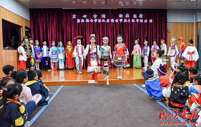 同一天下午,一場精彩的T臺秀在上海市閔行區(qū)梅隴鎮(zhèn)弘梅小學上演。小學生們身著民族服裝亮相,動感的音樂、精彩的表演,將“民族團結一家親”的理念演繹得生動活潑。學校布置的民族文化墻上,展示了我國56個民族的風土人情,營造了多姿多彩的民族文化氛圍,讓民族特色文化陪伴在學生身邊。