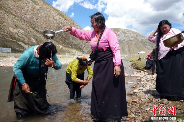 每年的夏末秋初,藏族同胞迎來一年一度的“沐浴節(jié)”。“沐浴節(jié)”,藏語稱為“嘎瑪日吉”,為期7天。這項古老習(xí)俗已經(jīng)延續(xù)了800多年。西藏流傳民謠,“待到棄山星升起,清凈溫暖好沐浴?!币簿褪钦f,在“棄山星(金星)””照亮雪域高原的七天里,藏族民眾在星光照耀過的水流中沐浴,可祛除身體病痛、心理雜念,全年健康。