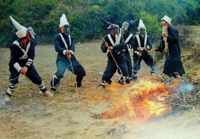 “撮泰吉”是彝語的稱謂,屬于彝族的一種古戲,譯意為“變?nèi)说膽颉保且妥逯匾脑甲诮绦叛龊兔褡屣L(fēng)情習(xí)俗。每當(dāng)春節(jié)期間正月初三至十五和六月二十四至二十六的火把節(jié)期間,貴州最高峰韭菜坪山脈一帶的赫章、威寧彝族同胞就會演出《撮泰吉》,舉行“掃火星”的驅(qū)邪納吉活動儀式,祈求火災(zāi)、瘟疫遠(yuǎn)離人們,讓平安幸福永遠(yuǎn)伴隨彝家。演出的內(nèi)容有祭祀祖先、民族遷徙、拓荒耕種、買賣牲畜、交配繁殖后代等,最后才逐戶為全寨掃除火星。
