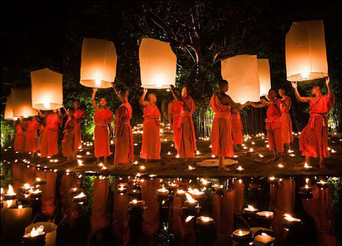 “奧瓦薩”時(shí)間在傣歷1 2月1 5日(陽(yáng)歷9月中旬)。這一天,表示從“關(guān)門節(jié)”以來(lái)的安居齋戒期已滿,男女老幼皆盛裝去佛寺里拜佛,以食物、鮮花、蠟條、錢幣獻(xiàn)佛,向佛祖懺悔,祈求佛祖賜福降平安,同時(shí)舉行盛大的娛樂(lè)集會(huì),“章哈”演唱,放高升、晚上放焰火、放孔明燈等,慶祝開(kāi)門節(jié)。此時(shí),雨季已過(guò),稻谷收割完畢,故也稱為慶祝豐收的節(jié)日。