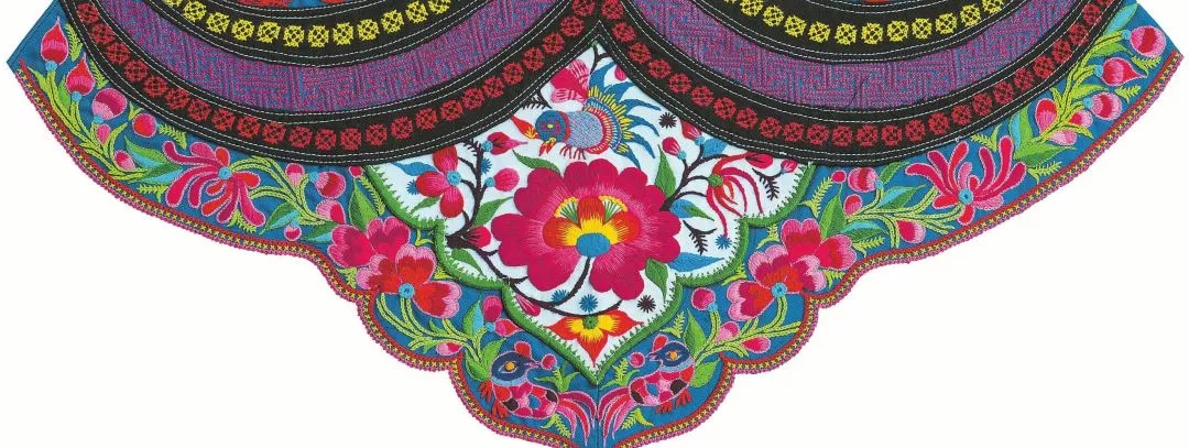 彝族婦女圍腰,是女性審美的結(jié)晶,實(shí)用美觀。圍腰是最能集中體現(xiàn)彝族女性心靈手巧的女紅作品,因此成為青年男子傳統(tǒng)擇偶的重要標(biāo)準(zhǔn)之一。每條彝族圍腰,須經(jīng)過剪紙、裁剪、刺繡、挑花、配飾等環(huán)節(jié),每一個(gè)細(xì)微的過程都傾注了彝女的聰明與才智。事實(shí)上,彝族婦女圍腰,還蘊(yùn)含著重要的彝族社會(huì)歷史、文化信息。