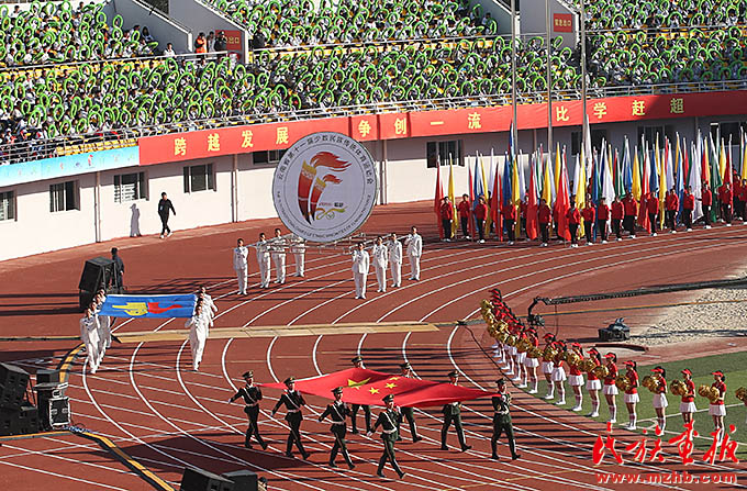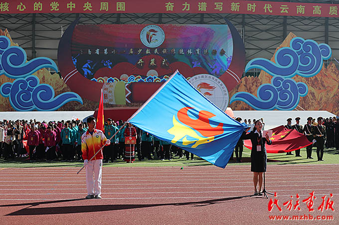 云南省少數(shù)民族運(yùn)動(dòng)會(huì)國旗、會(huì)旗方陣入場(chǎng)