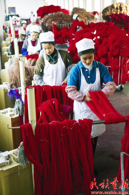 20世紀(jì)90年代初期,一些經(jīng)濟(jì)學(xué)家把戰(zhàn)略眼光投向資源豐厚的西部地區(qū),以促進(jìn)中西部省區(qū)經(jīng)濟(jì)協(xié)作為目的的隴海蘭新經(jīng)濟(jì)帶悄然成型,并輻射至西亞和歐洲。圖為跨入全國(guó)800家最大工業(yè)企業(yè)行列的甘肅省天水市甘肅絨線廠?!睹褡瀹媹?bào)》1994年第4期