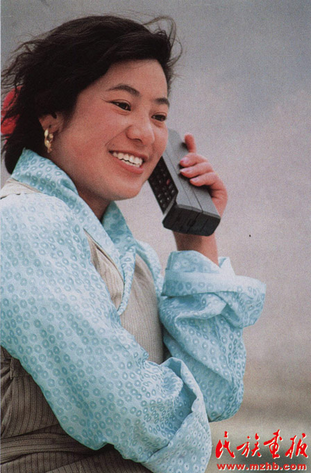 1995年,一位藏族婦女使用移動(dòng)電話聯(lián)系業(yè)務(wù)。這一年除青海省外,全國(guó)各省區(qū)都開通了移動(dòng)電話業(yè)務(wù),極大地方便了群眾的聯(lián)絡(luò)與溝通。《民族畫報(bào)》2008年第12期