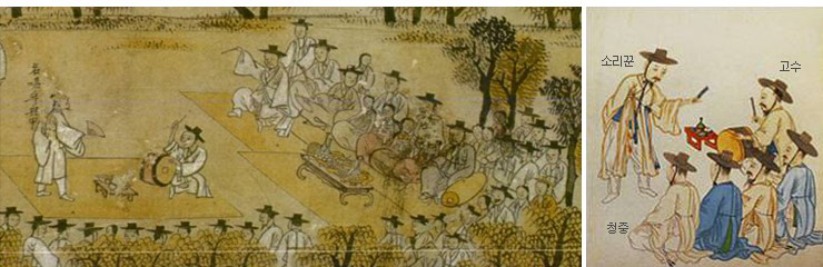 盤嗦哩通常由一人演唱,另一人用鼓伴奏。這種形式大約在18世紀(jì)中朝鮮王朝后期開始出現(xiàn),19世紀(jì)末是它的黃金時(shí)代。關(guān)于它的起源有兩種不同的看法,一種認(rèn)為它是18世紀(jì)的游浪藝人根據(jù)某種戲劇創(chuàng)造的,另一種則認(rèn)為是來源于薩滿教儀式中的歌曲。盤嗦哩的故鄉(xiāng)是韓國全羅北道的南原,至今那里仍盛行這種演唱。