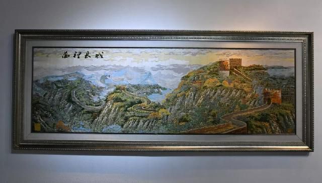 《萬(wàn)里長(zhǎng)城》是金文集數(shù)年之功完成的云錦巨制。觀(guān)者立于高山之巔,長(zhǎng)城從峰巒疊嶂間伸向遠(yuǎn)方,更有一旁朝霞相伴,使畫(huà)面錯(cuò)落有致,層次豐富。