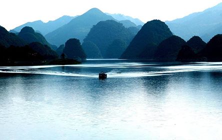 百花湖在朱昌鎮(zhèn)旁,湖中有100多個小島,以湖汊多、島嶼多見勝,遠眺之下,很有幾分江南水鄉(xiāng)的韻味。游覽百花湖的最佳時間是春天,那時百花湖上就會百花盛開,姹紫嫣紅,百花湖也是因此而得名的。景區(qū)以湖光山色和巖溶地貌的自然景觀為主體,兼具秀、幽、奇、巧的特色。