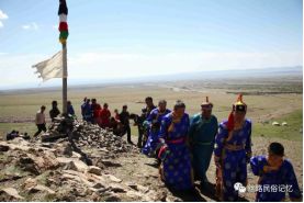 牧民攜家人一起轉(zhuǎn)敖包祭拜