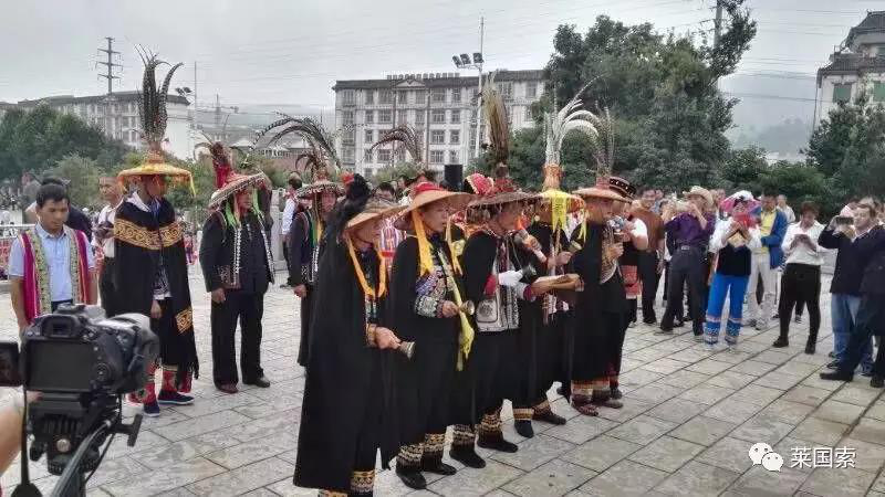 祭祖大典隆重、肅敬、莊嚴。儀式: 1、吹奏長號樂、鳴禮炮,敬告天地東西南北中五方神抵;2、奏樂(長號、噴吶),請彝族畢摩上香;3、奏樂(長號、噴種),敬貢三牲,果品,圣水,豬頭,雞;4、請彝族畢摩撒五谷,念誦《散五谷詞》;5、彝族畢摩向祖先阿普駕幕行跪拜禮,恭誦《祭祖祈福經(jīng)》;6、請各地同胞代表恭誦《祭文》;7、請各位領(lǐng)導(dǎo)、各位來賓、各位朋友全體起立!向彝族祖先阿普篤幕及六祖行叩首禮:一鞠躬!再鞠躬!三鞠躬!禮畢!8、奏樂(長號、噴吶),恭請貴賓敬獻高香。
