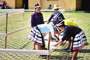 白褲瑤婦女紡紗織布做衣,新買的棉紗要經過蒸煮、漂洗、涼曬才可織布,而年輕一代的白褲瑤婦女大多直接到市場上買白布。2007年10月拍攝。
