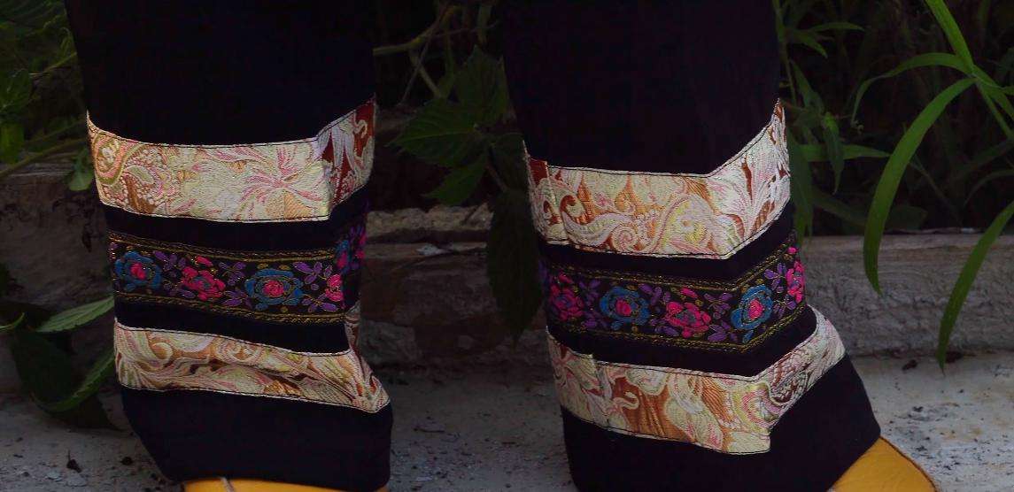 傳統(tǒng)服飾是由布依族傳統(tǒng)工藝制作而成,其上衣以藍色打底的斜襟衣和白色打底的圍腰為主,上衣對襟處繡有花草圖案作為裝飾,圍腰上部也繡有花草圖案作為描邊。下身則以黑色長褲和灰色長褲為主,衣飾上所有的雕花刺繡圖案全部出自之手。多從市場上購買。其上身對襟處和圍腰上部也繡有花紋圖案,但是這些花紋圖案則是現(xiàn)代機器之功,下身以黑色打底的長褲為主,在褲腳處繡有花草圖案,上板村布依族女性們還有一個習慣,就是不管是穿戴傳統(tǒng)服飾還是現(xiàn)代服飾都會戴有黑色圓帽?! ?/p>