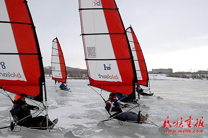 當?shù)厝罕婓w驗冰帆運動的無限樂趣。